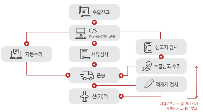 수출신고는 관세청 우범물품선별시스템을 통해 자동으로 수리되거나 서류심사, 물품검사 등으로 분류되