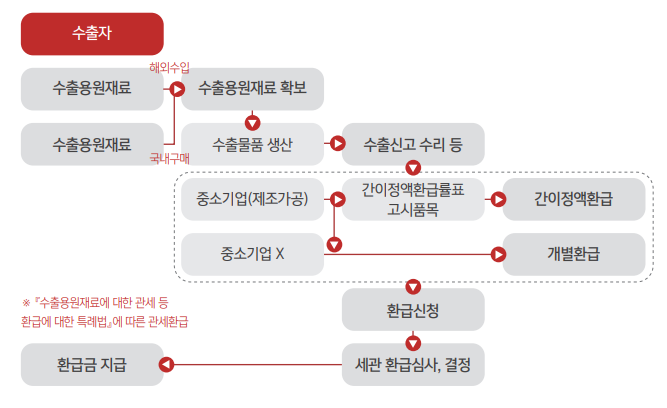 ○관세환급이란 수출용 원재료를 수입할 때 납부하였거나 납부할 관세를 수출자 또는 수출물품의 생산자에게 돌려주는 제도를 말합니다.