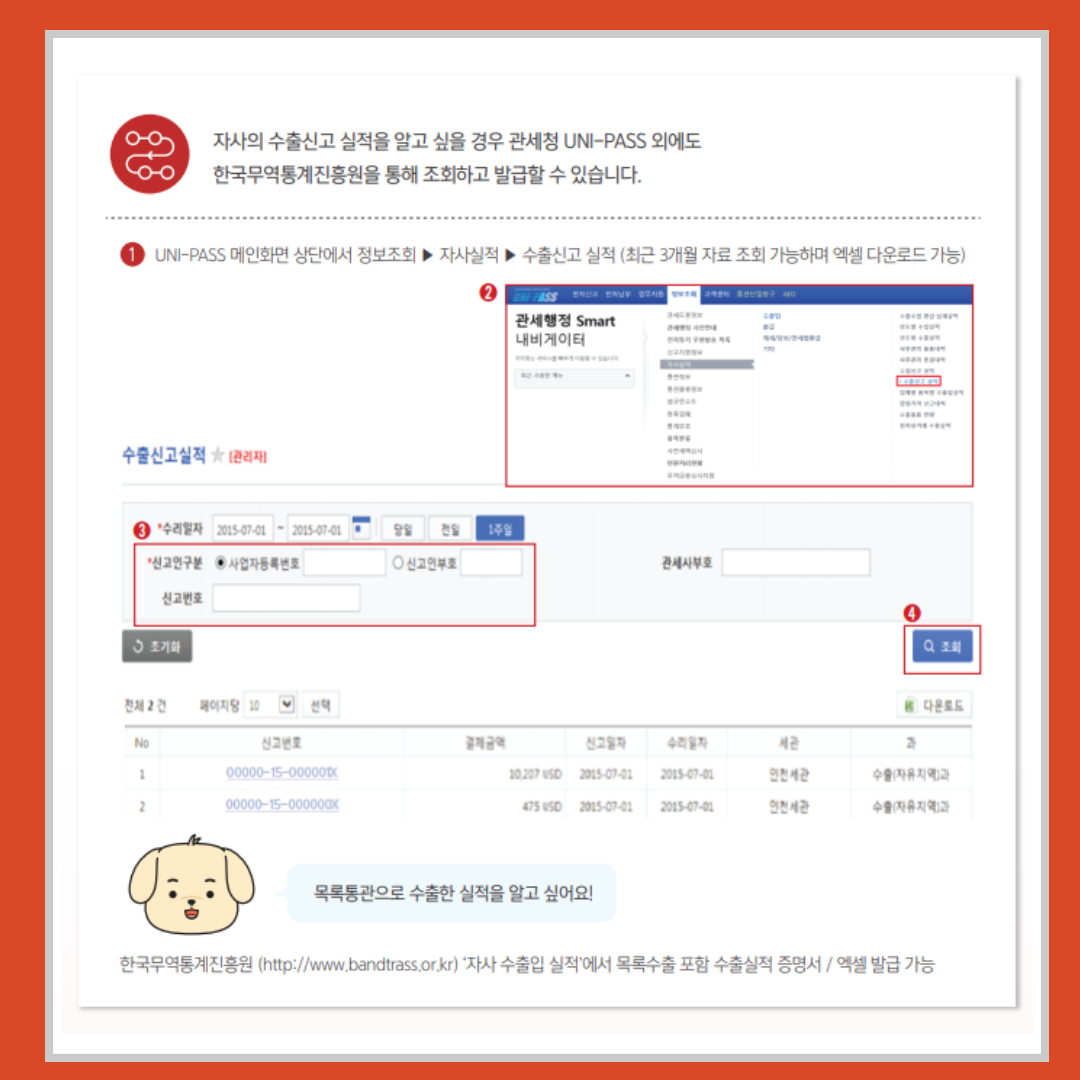 전자상거래 수출신고 가이드 - 수출신고실적 조회 / 발급