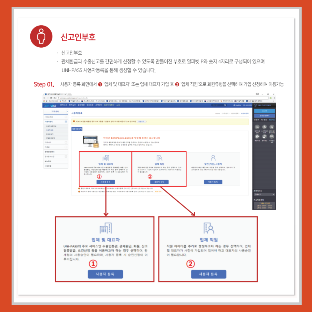 · 관세환급과 수출신고를 간편하게 신청할 수 있도록 만들어진 부호로 알파벳 P와 숫자 4자리로 구성되어 있으며 UNI-PASS 사용자등록을 통해 생성할 수 있습니다.