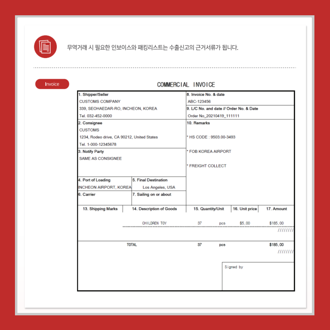 전자상거래 수출신고 가이드 - 상업서류 소개