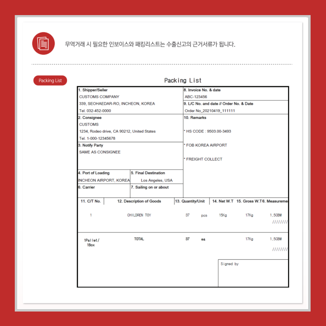 ○ 무역거래 시 필요한 인보이스와 패킹리스트는 수출신고의 근거서류가 됩니다.