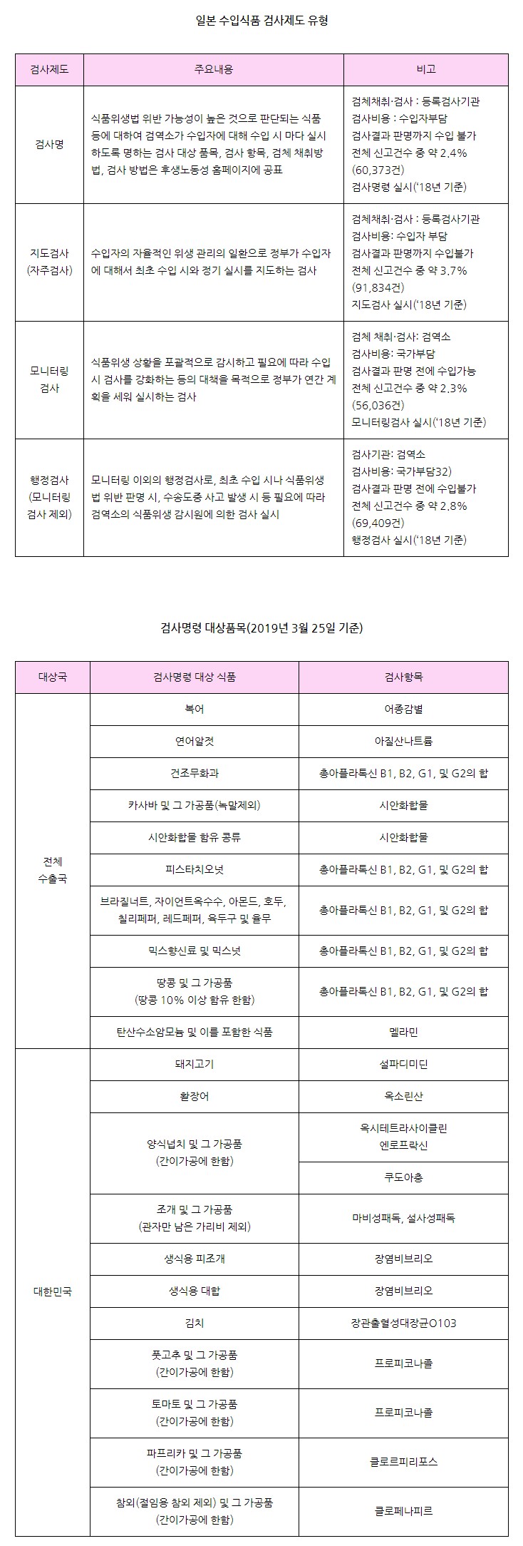 식품 수출 안내서 일본편 - 수입식품 검사제도 유형 및 검사명령 대상품목