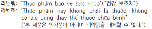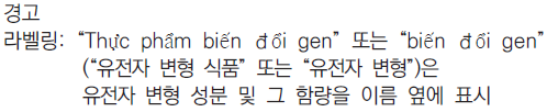 ○ 베트남어로 표시해야 한다. 다만, 화학식 등 베트남어로 존재하지 않는 정보들은 외국어(알파벳)로 표시가 가능하다. 외국어로 표시할 경우 베트남어와 의미가 같아야하며, 베트남어 글자 크기보다 크지 않아야 한다.