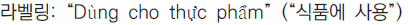 ○ 글자 및 숫자 크기는 치수법(Law on Measurement)에 준해야 한다. 만약 상품이 기포장된 식품, 식품첨가물, 식품가공보조제에 해당된다면 라벨 글자 높이가 최소 1.2mm 이상이어야 한다.