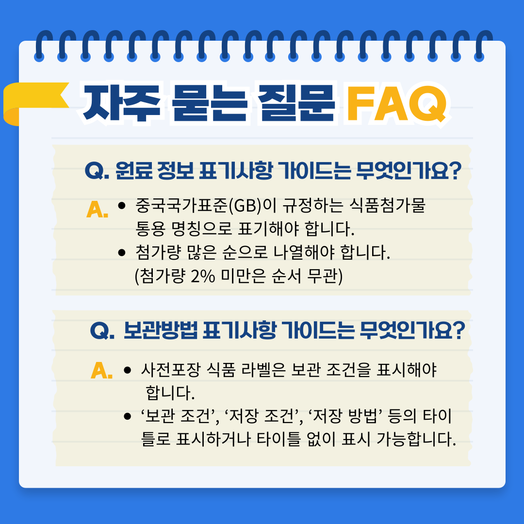 A. - 중국국가표준(GB)이 규정하는 식품첨가물 통용 명칭으로 표기해야 합니다.