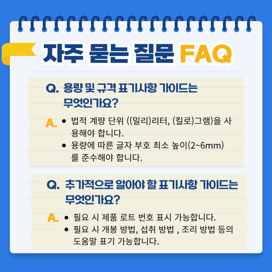 Q. 용량 및 규격 표기사항 가이드는 무엇인가요?