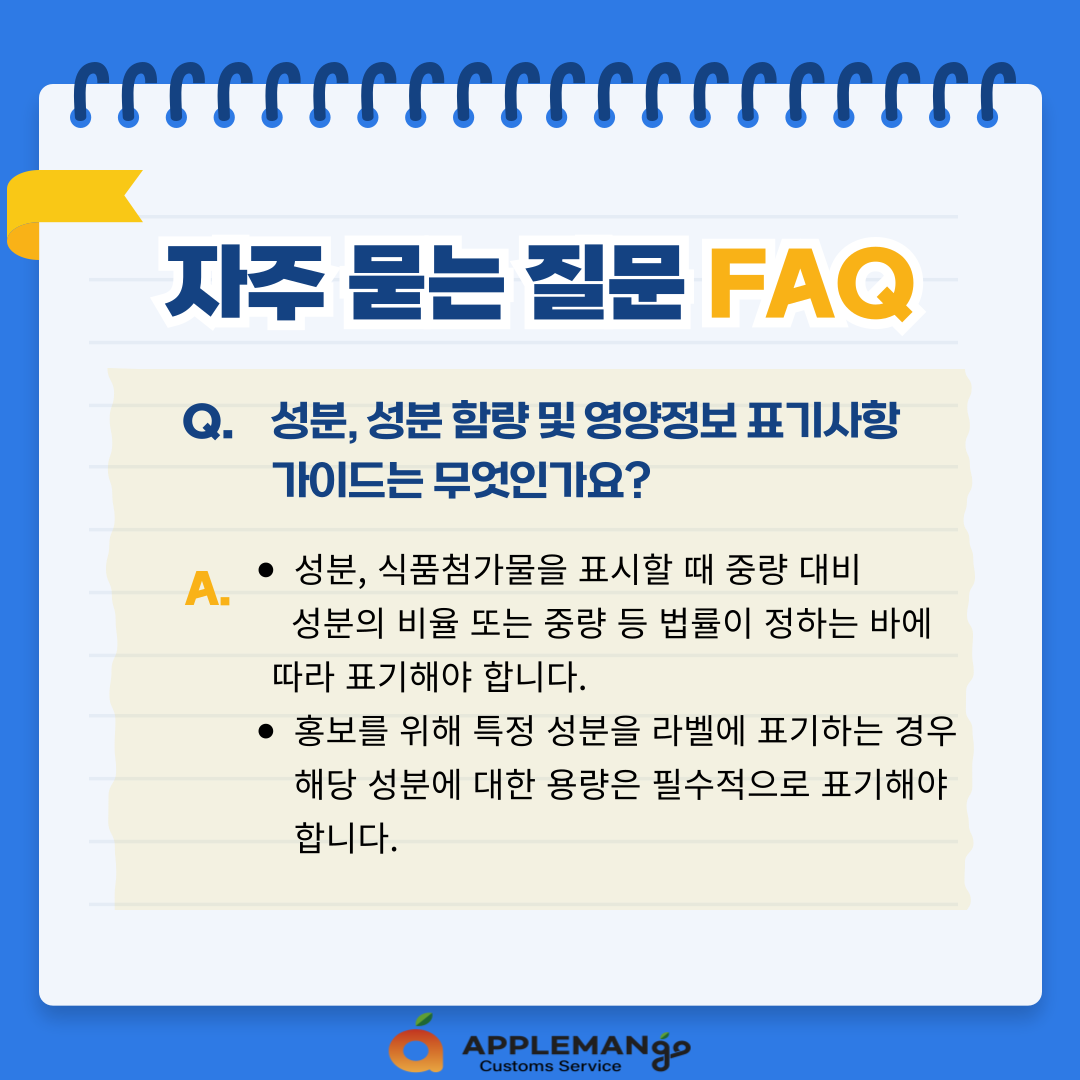 Q. 성분, 성분 함량 및 영양정보 표기사항 가이드는 무엇인가요?
