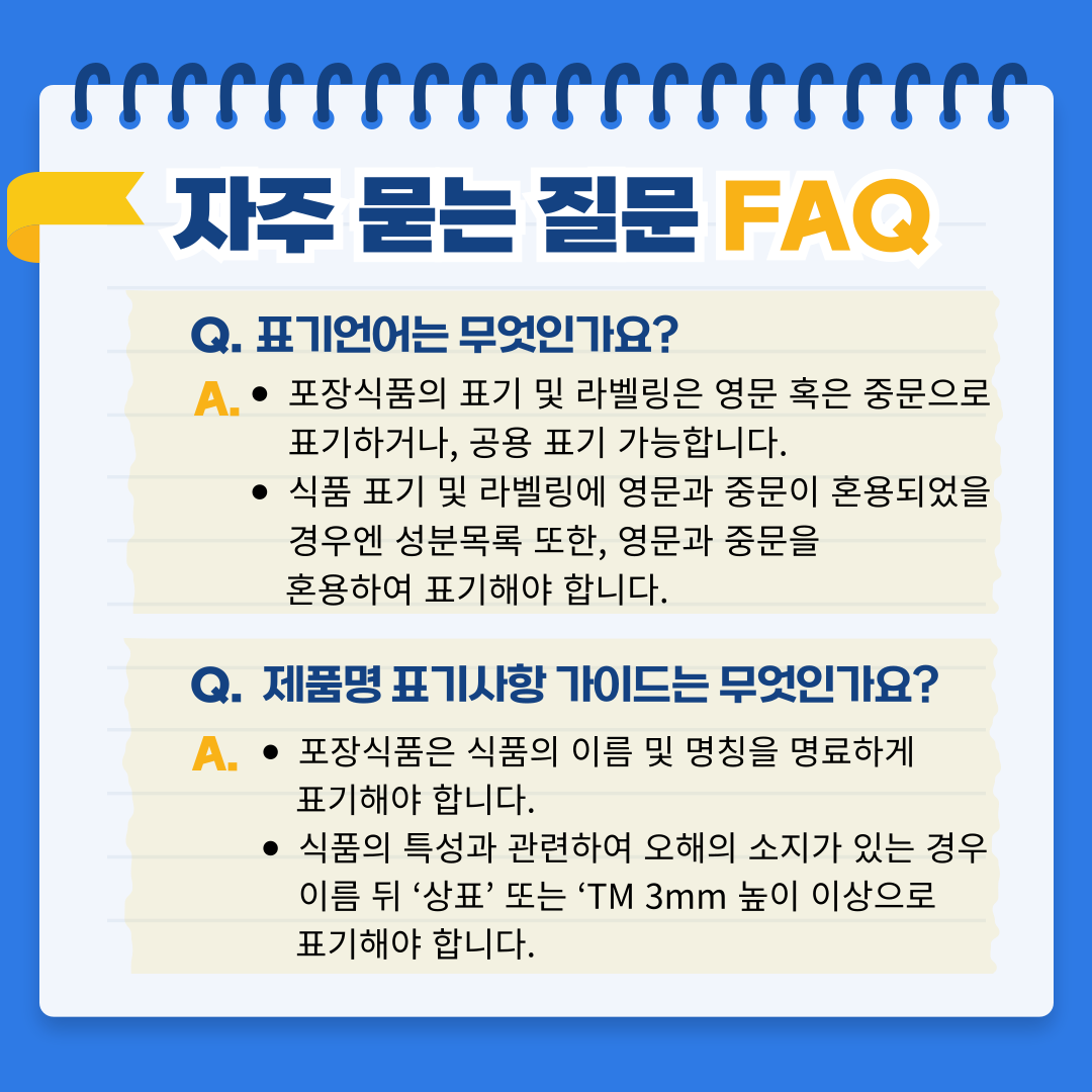 - 식품 표기 및 라벨링에 영문과 중문이 혼용되었을 경우엔 성분목록 또한, 영문과 중문을 혼용하여 표기해야 합니다.