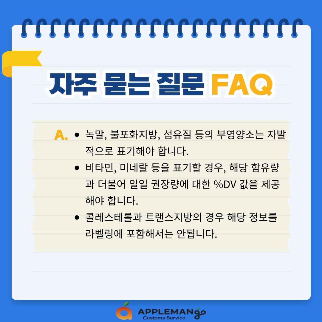 - 콜레스테롤과 트랜스지방의 경우 해당 정보를 라벨링에 포함해서는 안됩니다.