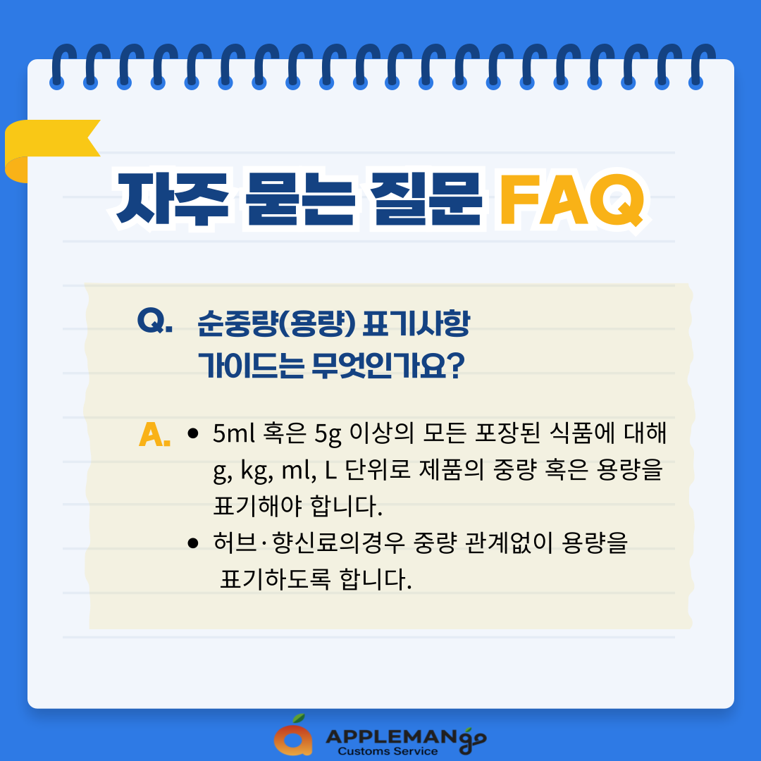 Q. 순중량(용량) 표기사항 가이드는 무엇인가요?
