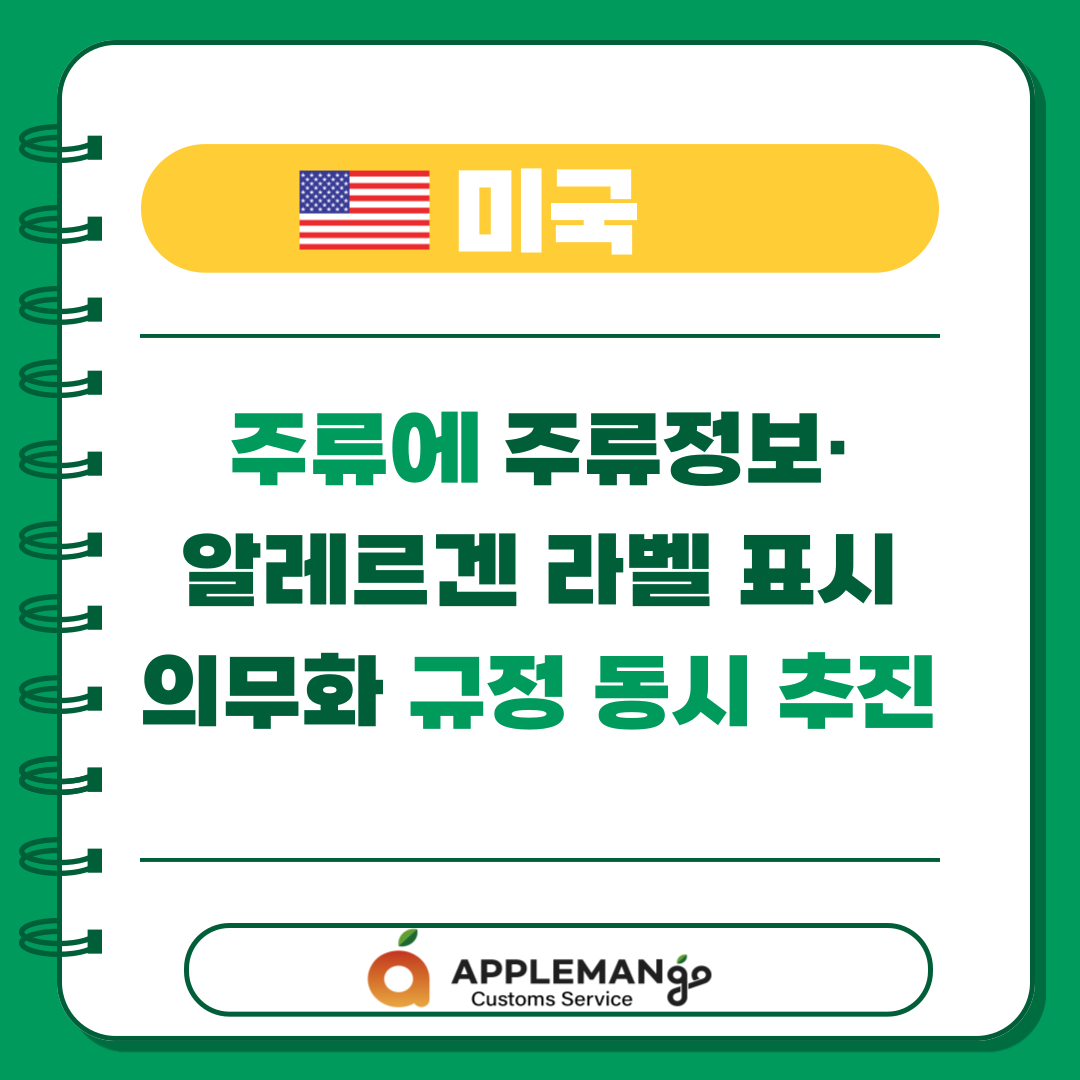 2025년 1월 17일, 미국 재무부 산하 알코올·담배세무무역국(Alcohol and Tobacco Tax and Trade Bureau, TTB)은 모든 주류 제품에 대해 주류정보(Alcohol Facts) 표시 의무화와 알레르겐 표시 의무화를 골자로 하는 두 건의 규정 제안서를 연방관보(Federal Register)에 공표하고, 세계무역기구(WTO)에 통보함(2025년 4월 8일, 의견 제출 마감일을 2025년 8월 15일까지 연장함)