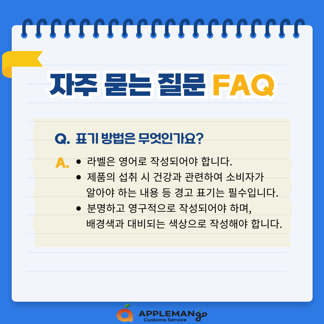 A. - 제품의 안전과 건강상의 문제가 일어나지 않을 수 있도록 하는 내용의 사용법 또는 보관방법을 표기해야 합니다.