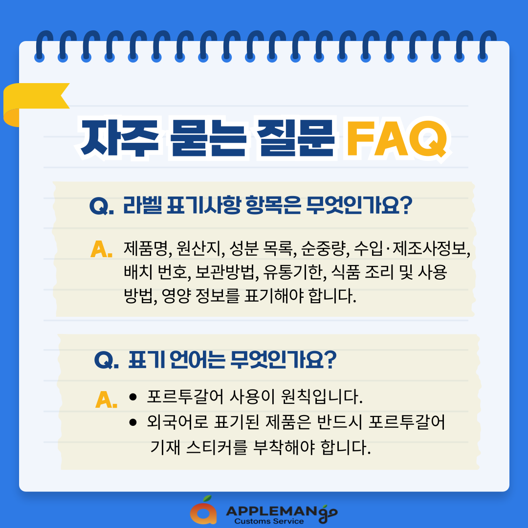 - 외국어로 표기된 제품은 반드시 포르투갈어 기재 스티커를 부착해야 합니다.