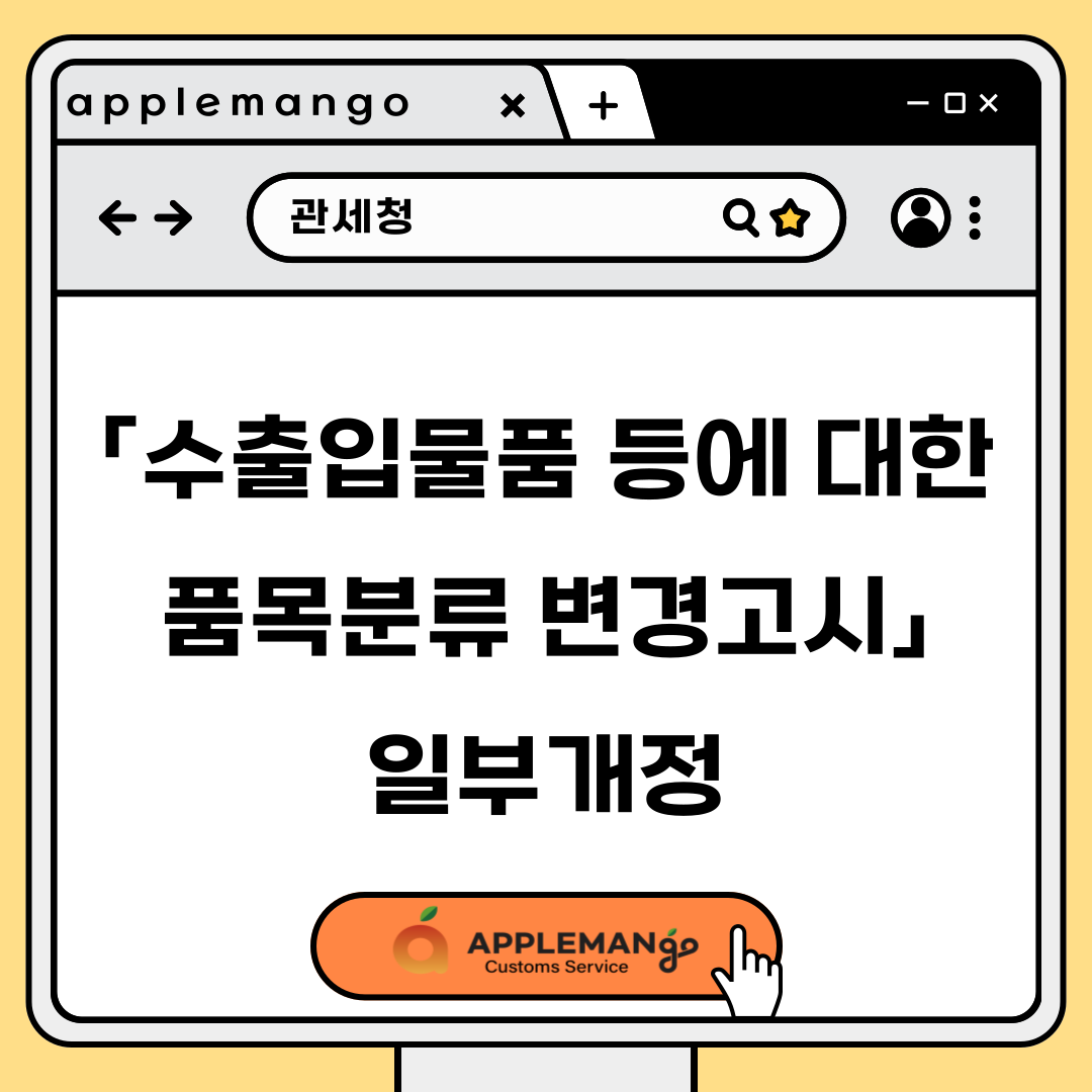 「수출입물품 등에 대한 품목분류 변경고시」 일부개정