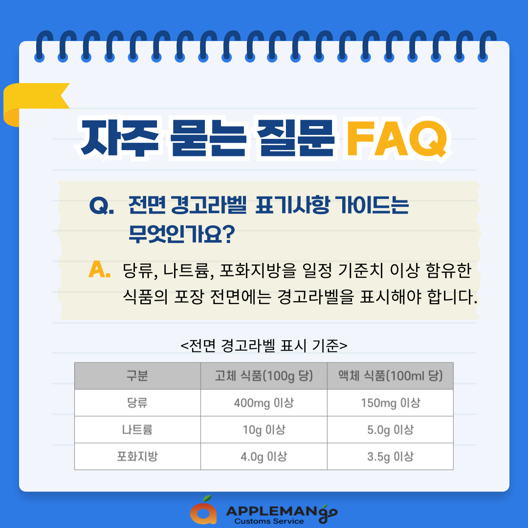 Q. 전면 경고라벨 표기사항 가이드는 무엇인가요?