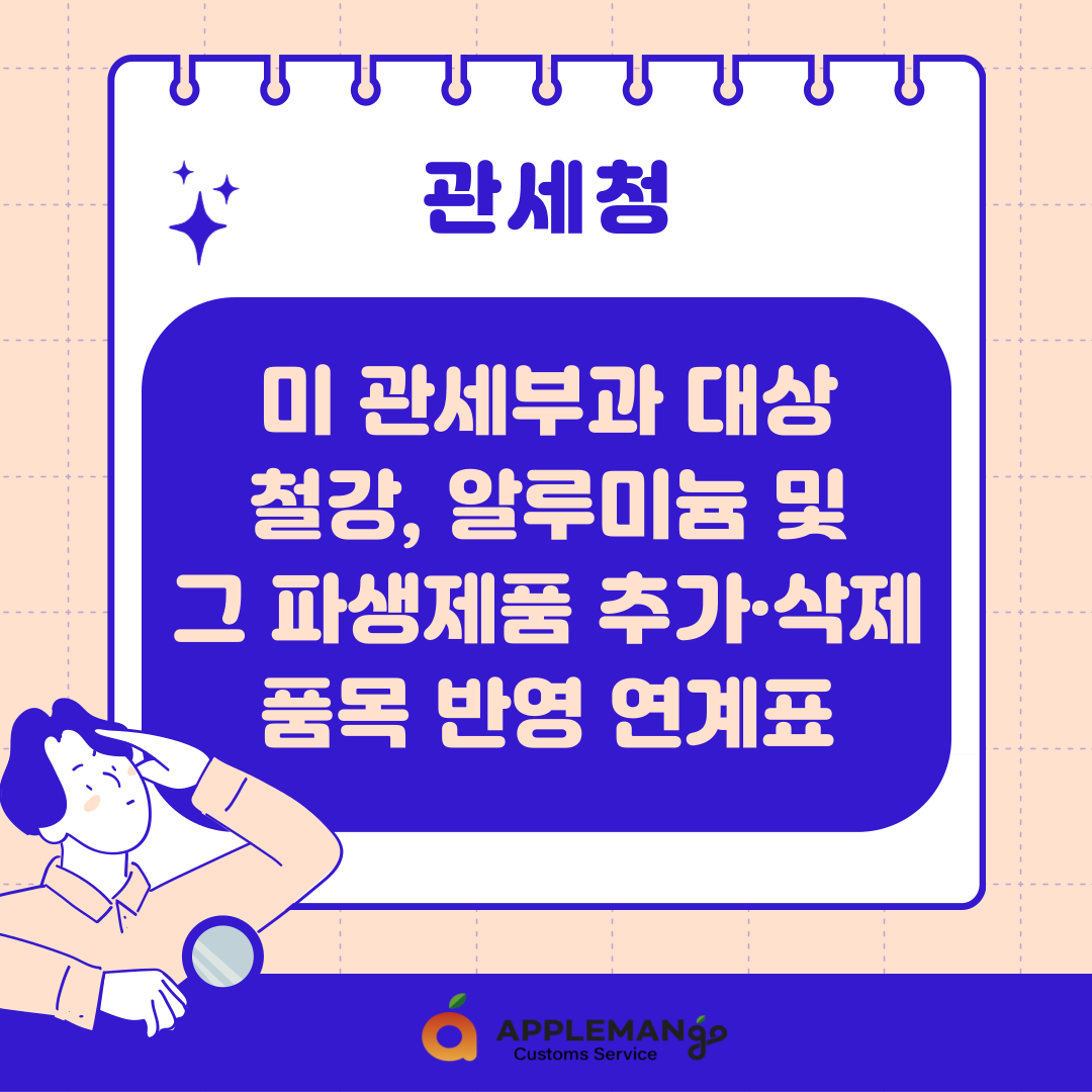 미 관세부과 대상 철강, 알루미늄 및 그 파생제품 추가·삭제 품목 반영 연계표