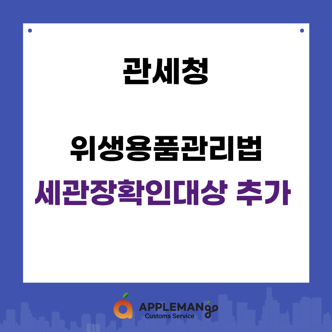 - 「위생용품 관리법」 관련 세관장확인물품 추가(17개)
