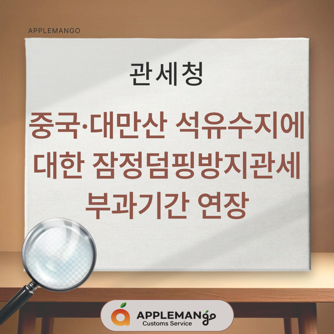 관세청 - 중국·대만산 석유수지에 대한 잠정덤핑방지관세 부과기간 연장