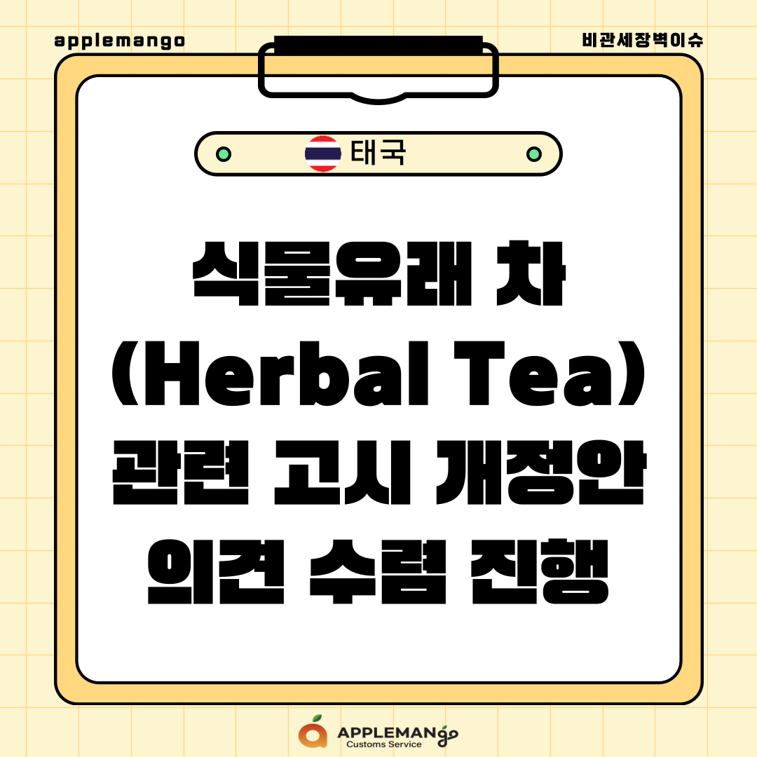 2025년 6월 13일, 태국 보건부(Ministry of Public Health, MOH)는 ‘「식물유래 차(herbal tea) 에 관한 보건부 고시(제2판)」(초안)’을 태국 식약처(Food and Drug Administration, FDA) 홈페이지에 공개하고 의견 수렴을 진행 중임. 이번 개정을 통해 ‘식물유래 차(Herbal Tea)’의 정의를 ‘식물 및 버섯 유래 제품’으로 확대하고, 허용 식물 목록도 202종에서 311종으로 확장함