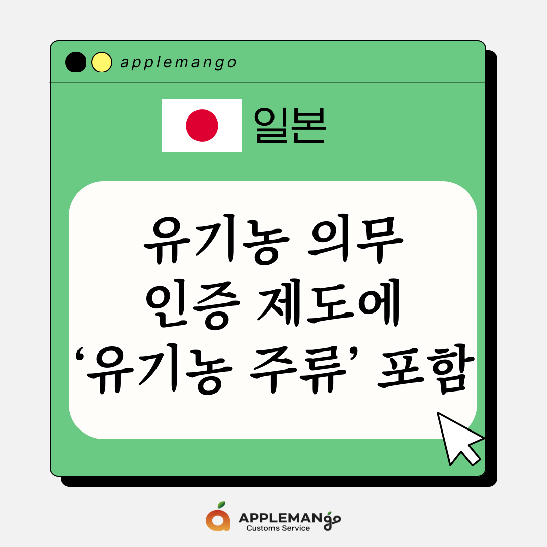 2025년 10월 1일부터 일본은 유기농 JAS(일본농림규격, Japanese Agricultural Standards) 제도에 따라 모든 유기농 품목에 JAS 마크 표시를 의무화함. 2022년 10월 1일 시행된 JAS법 개정에 따른 전환 기간(2022년 10월 1일~2025년 9월 30일)이 종료됨에 따라, ‘유기농 주류’가 유기농 JAS 제도에 포함됨.