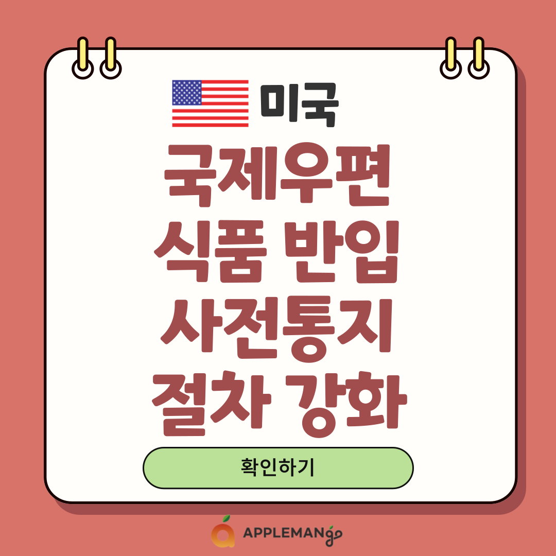 미국 - 국제우편 식품 반입 사전통지 절차 강화