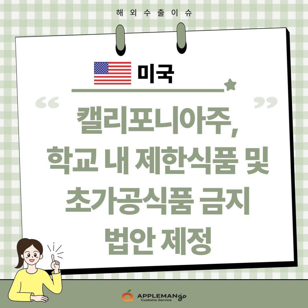 미국 - 캘리포니아주, 학교 내 제한식품 및 초가공식품 금지 법안 제정