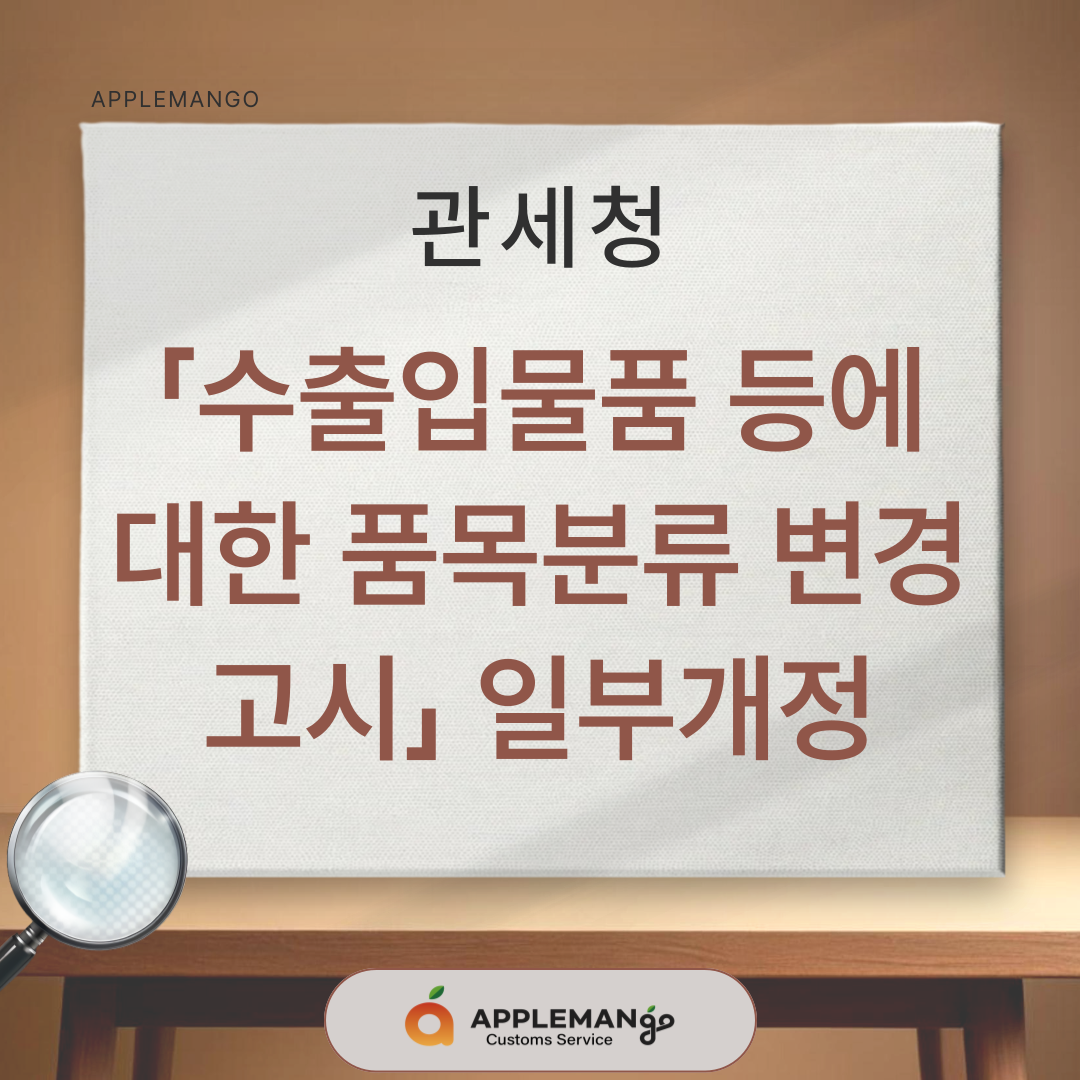 관세청, 「수출입물품 등에 대한 품목분류 변경고시」 일부개정
