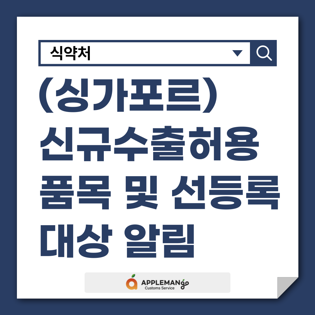 | 이전글 | 식약처, (싱가포르) 수출가능 품목 안내+선등록대상 추천서식(2025.11.3. 기준) |