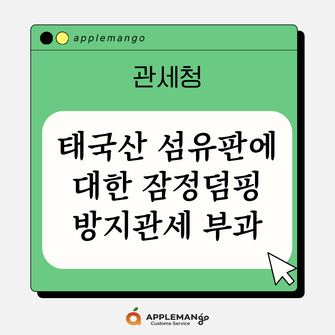 관세청, 태국산 섬유판에 대한 잠정덤핑방지관세 부과