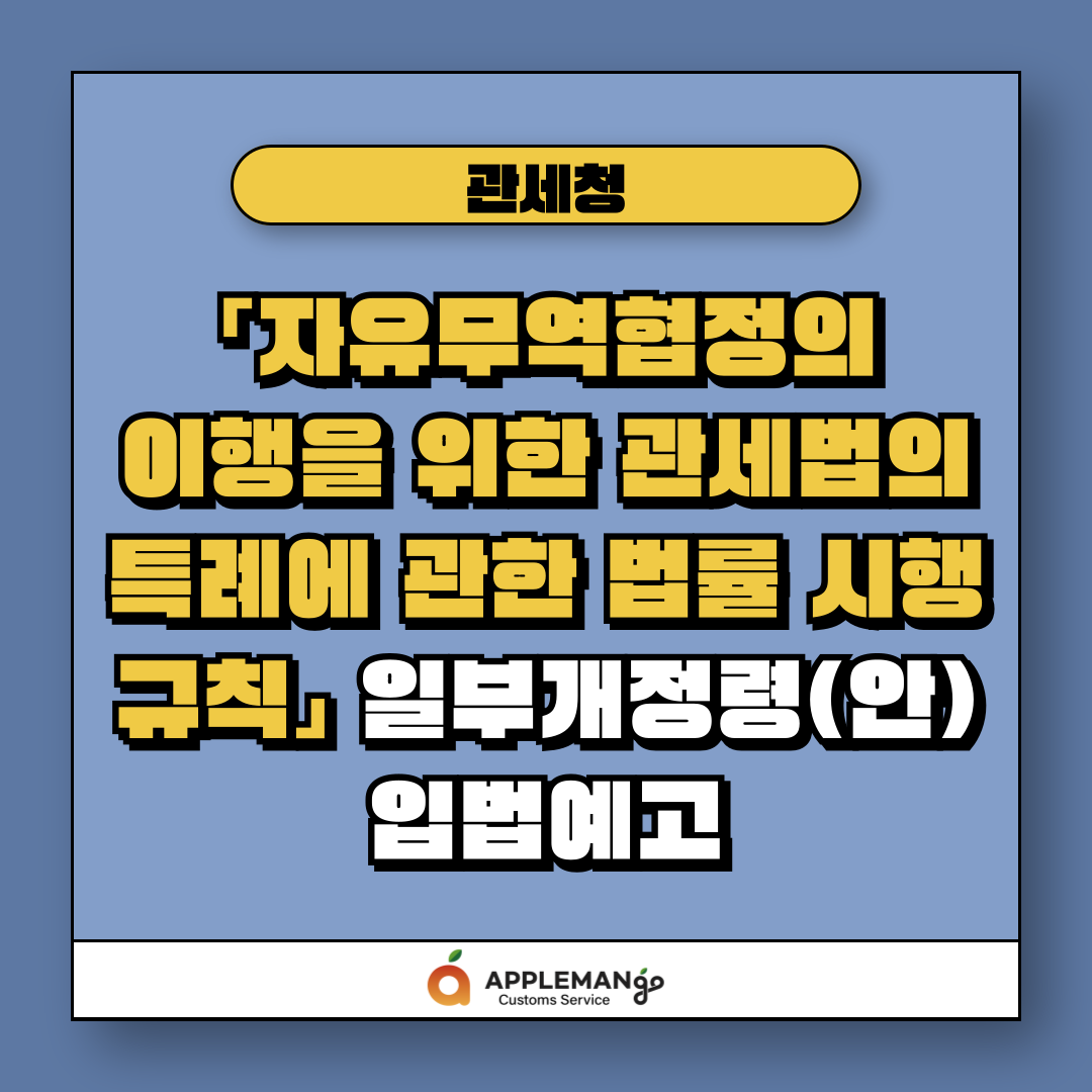 관세청,「자유무역협정의 이행을 위한 관세법의 특례에 관한 법률 시행규칙」 일부개정령(안) 입법예고