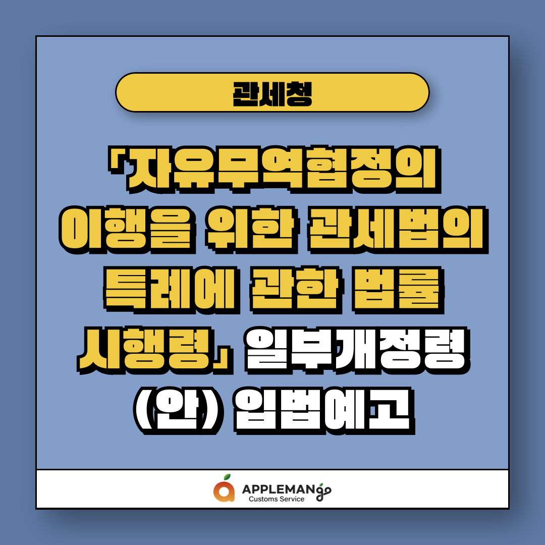 관세청, 「자유무역협정의 이행을 위한 관세법의 특례에 관한 법률 시행령」 일부개정령(안) 입법예고