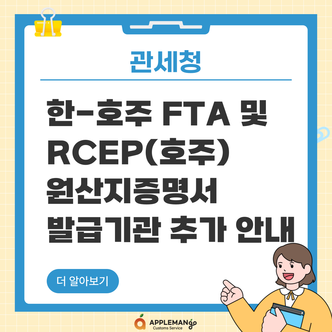 관세청, 한-호주 FTA 및 RCEP(호주) 원산지증명서 발급기관 추가 안내
