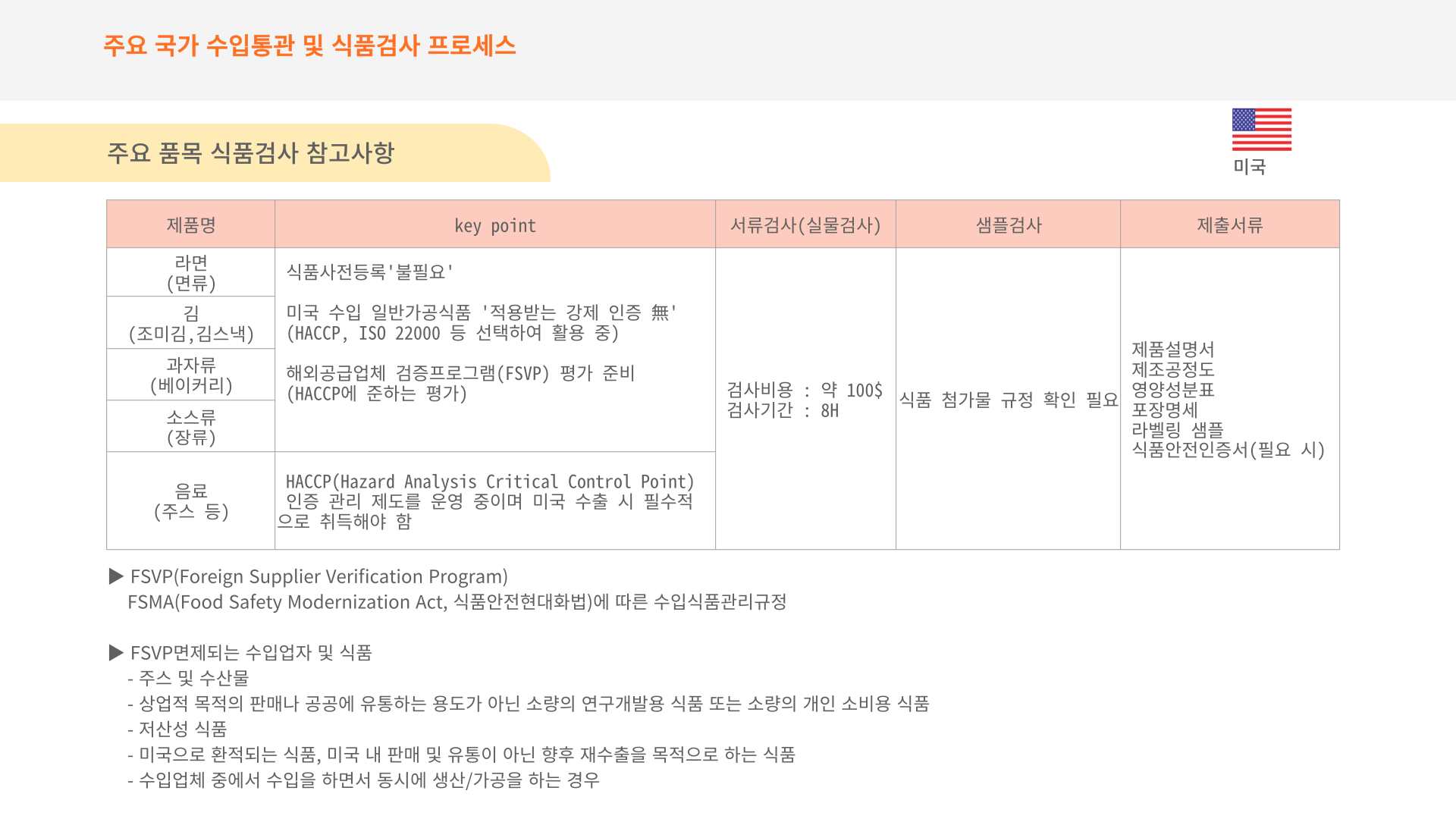 FSVP가 면제되고, HACCP이나 ISO22000등 선택하여 관리할 수 있습니다.
