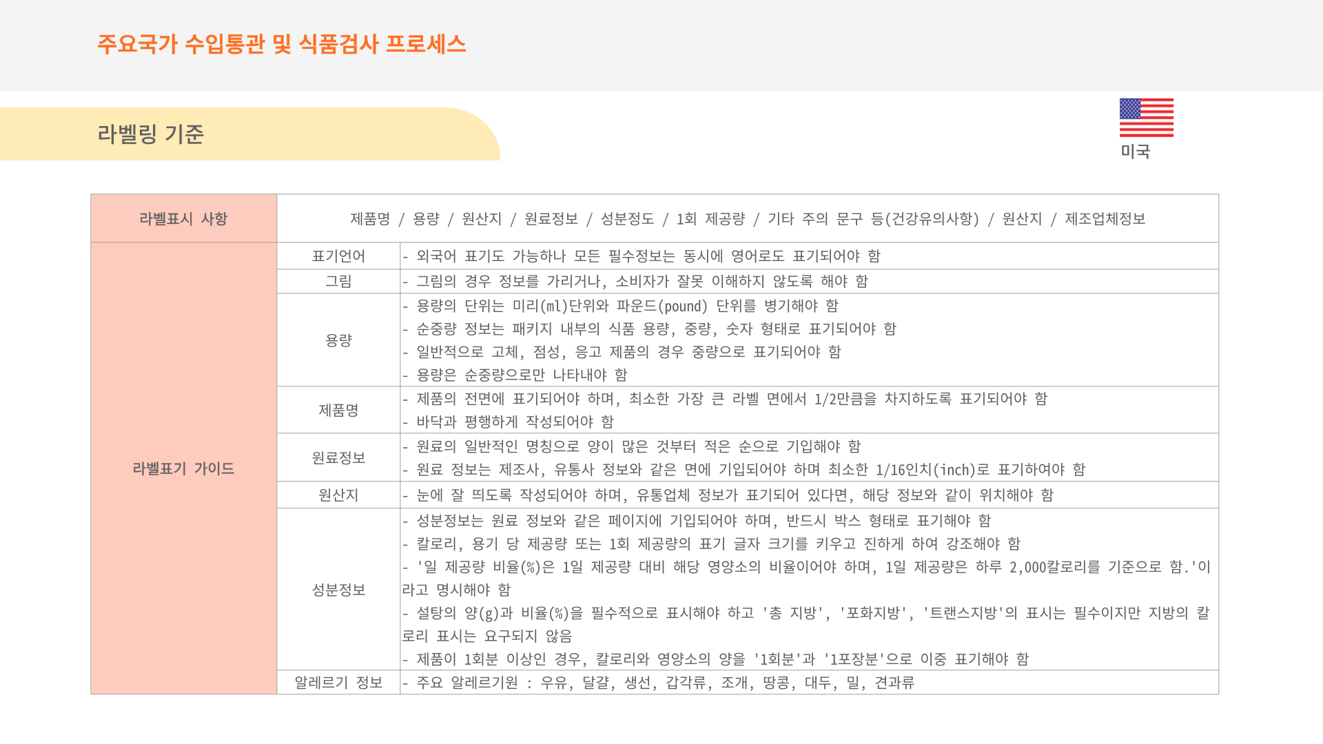 미국의 라벨규정 준수여부를 확인하셔야 해요.