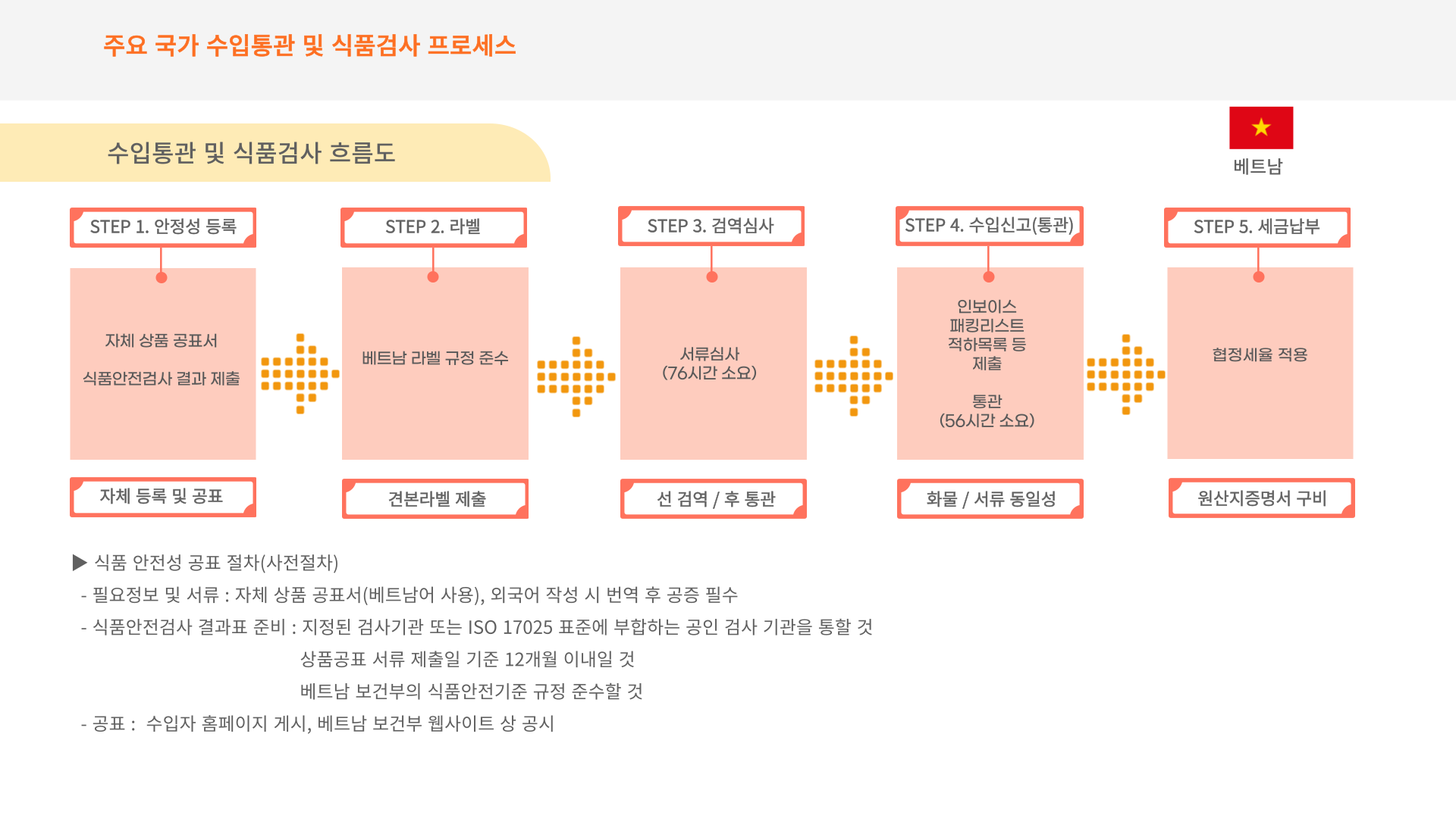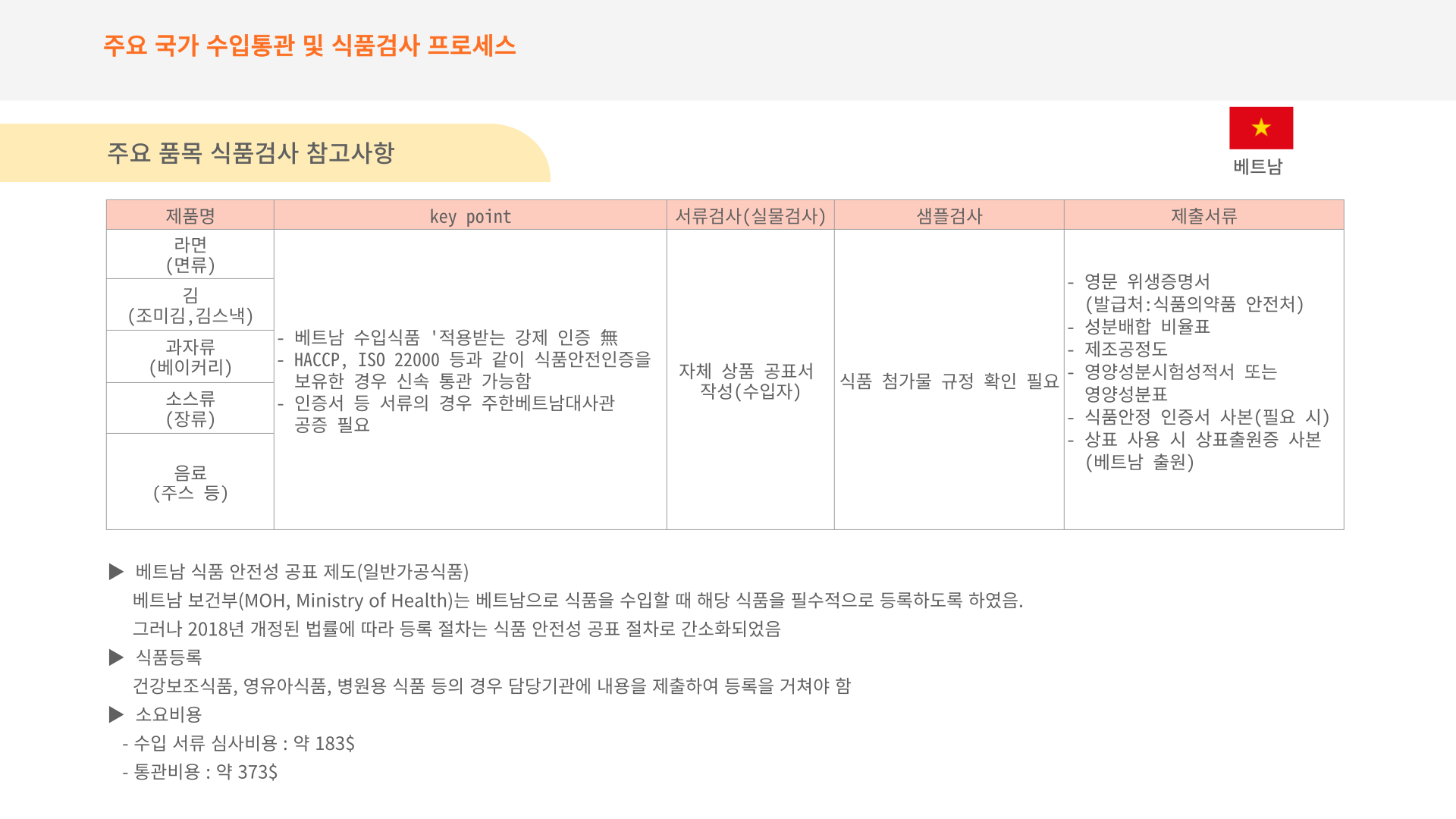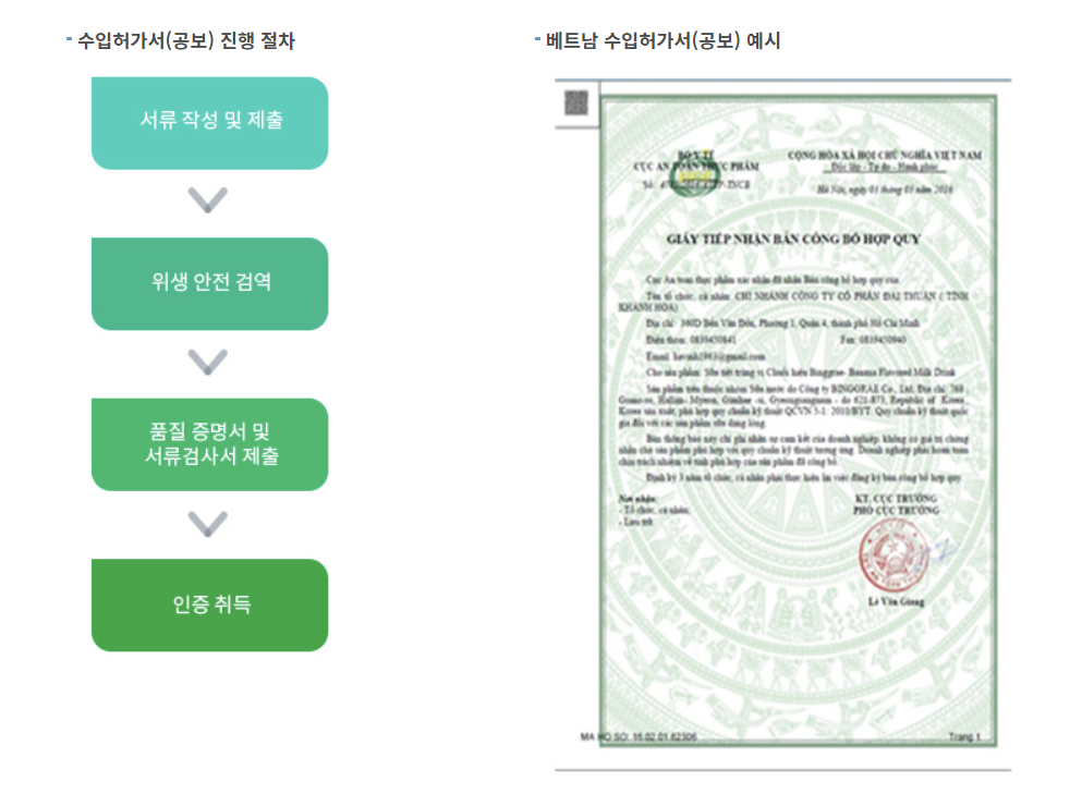 외국에서 생산된 가공식품을 베트남으로 수입·유통 할 경우 해당 식품의 안전성을