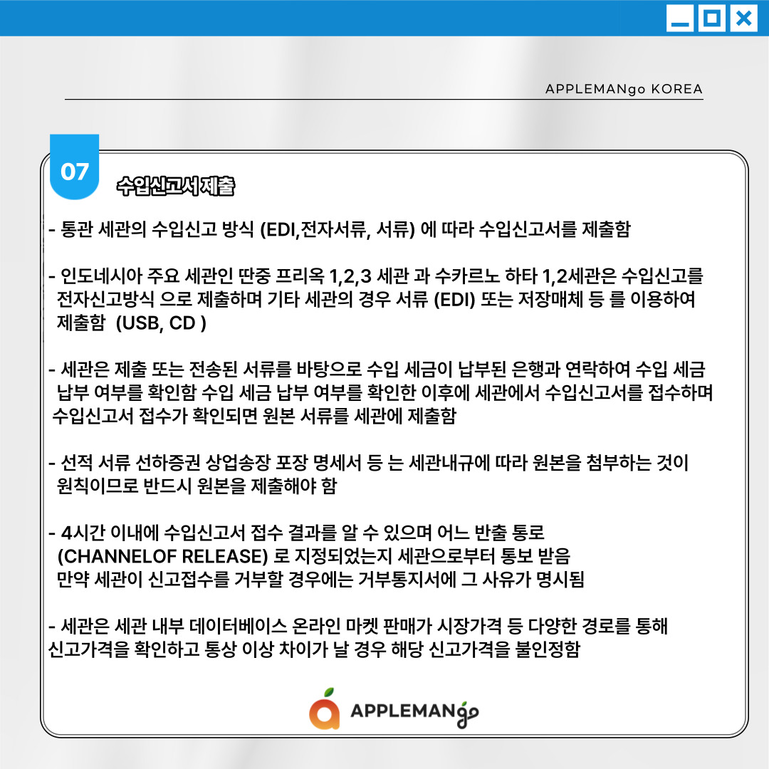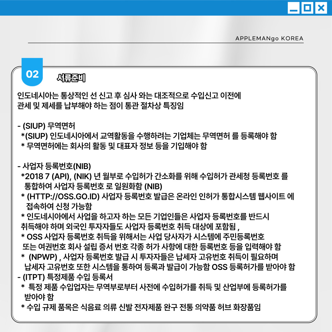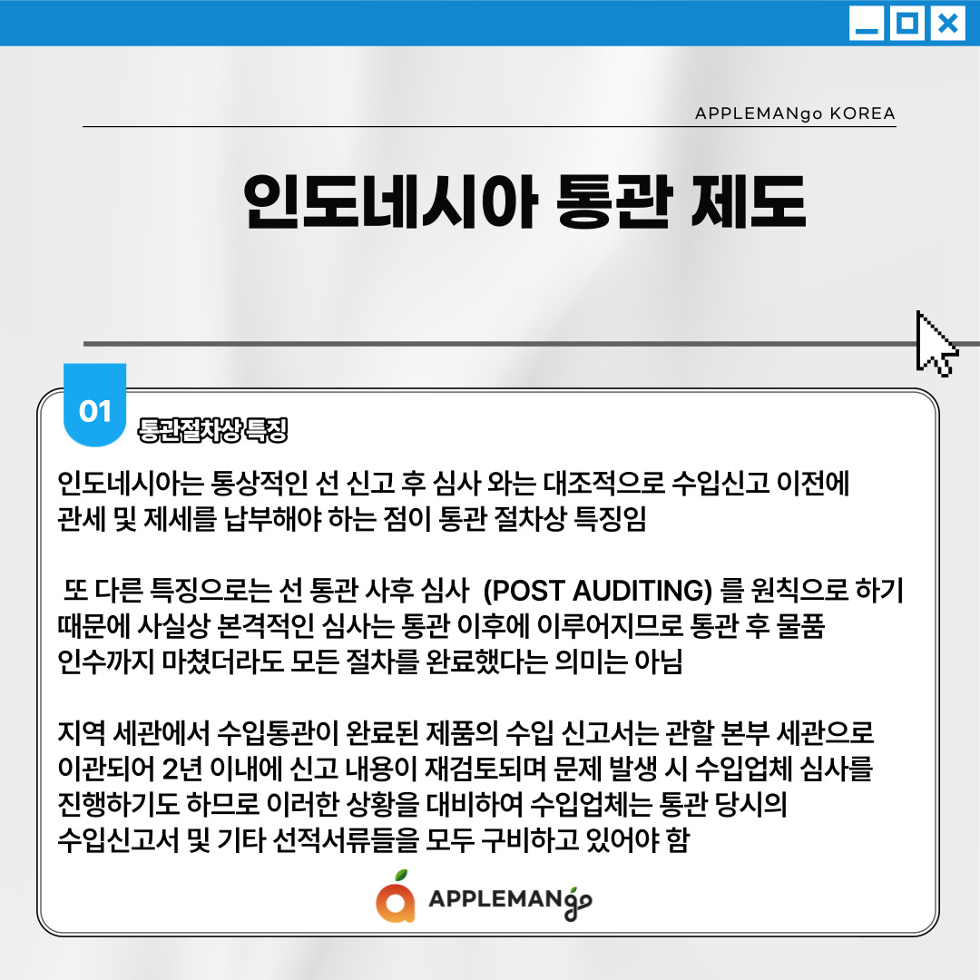 인도네시아는 통상적인 선 신고 후 심사 와는 대조적으로