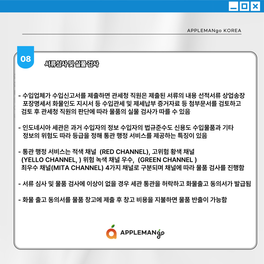 인도네시아 내 검역 및 통관서비스와
