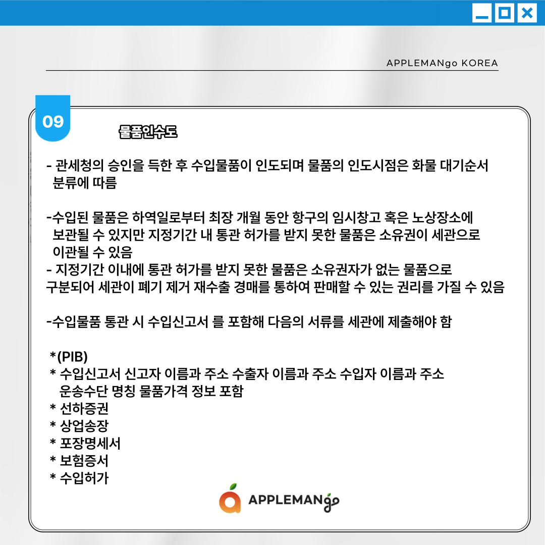 관세청의 승인을 득한 후 수입물품이 인도되며