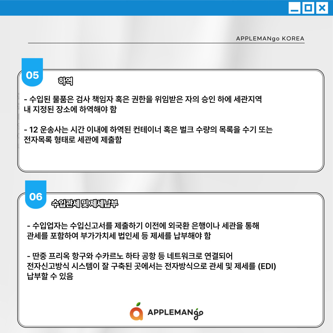 애플망고코리아에서는 현지 검역및통관파트너와 함께