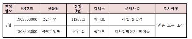 자료원 : 중화인민공화국 해관총서 수출입식품안전국(2023.08.19)