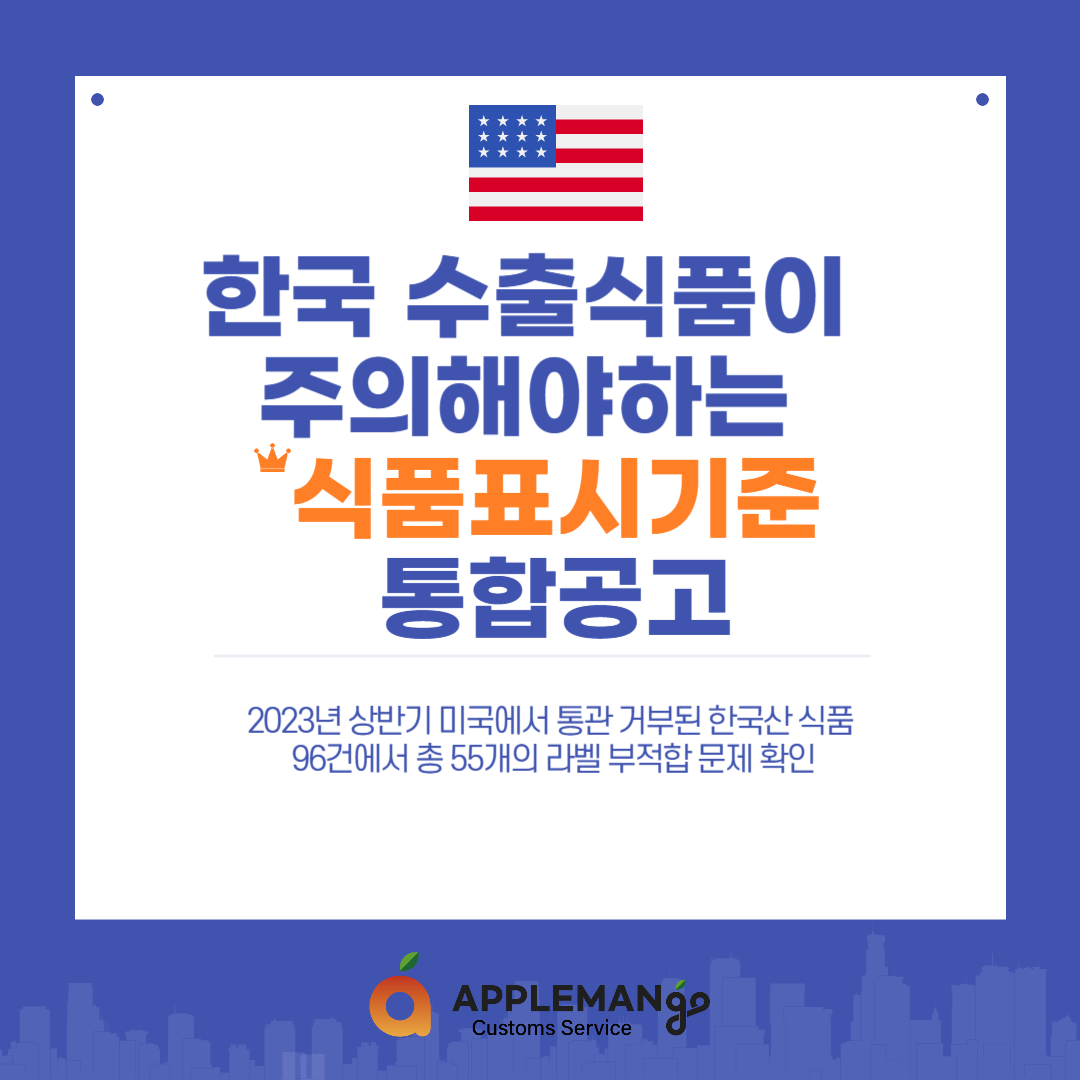 2023년 상반기 미국에서 통관 거부된 한국산 식품 96건에서 총 55개의 라벨 부적합 문제 확인