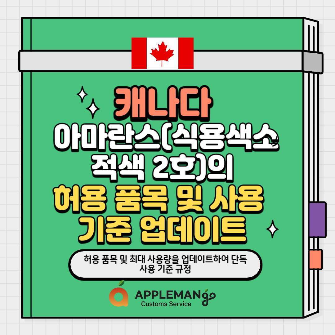 「식품첨가물의 기준 및 규격」 고시 제2023-60호에 따르면, 한국은 식품 착색제로 사용되는 아마란스(amaranth)를 ‘식용색소적색제2호’로 정의하고 총 13개 식품 품목에 사용 기준을 규정함. 따라서, 캐나다로 식품을 수출하는 한국 식품 기업은 이번에 업데이트된 「허용된 착색제 목록」을 통해 캐나다로 수출되는 식품이 아마란스(식용색소적색제2호)의 사용이 허용된 품목에 해당하는지 확인하고, 캐나다에서 규정하는 아마란스(식용색소적색제2호)의 품목별 사용 기준을 준수할 수 있도록 주의해야 함
