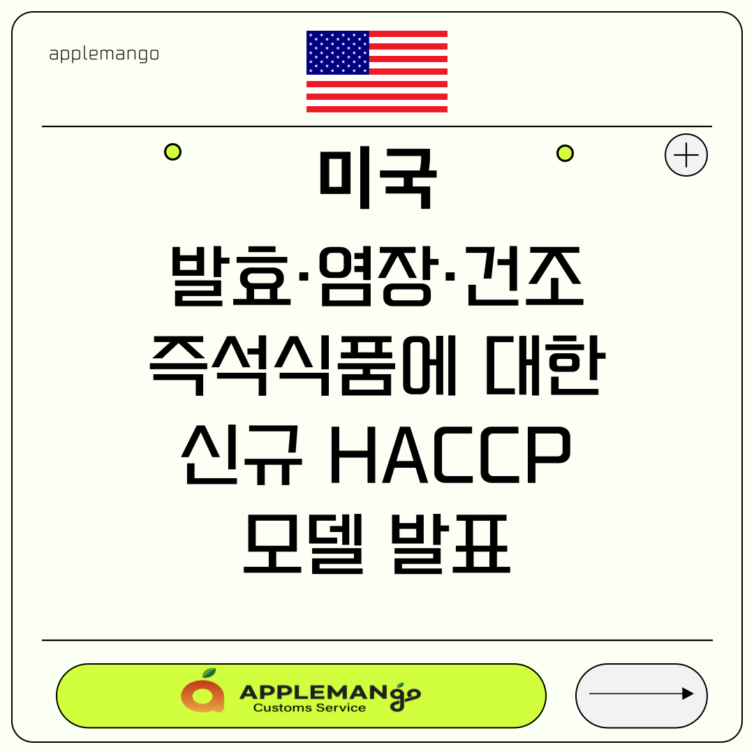 2025년 8월 8일, 미국 농무부 식품안전검사국(FSIS, Food Safety and Inspection Service)은 즉석 섭취 가능한 발효·염장·건조 제품을 대상으로 하는 새로운 식품 안전관리인증기준(HACCP, Hazard Analysis Critical Control Point) 모델을 발표하였으며, 이번 모델은 비가열·상온 저장 가능 제품에 초점이 맞춰져 있음