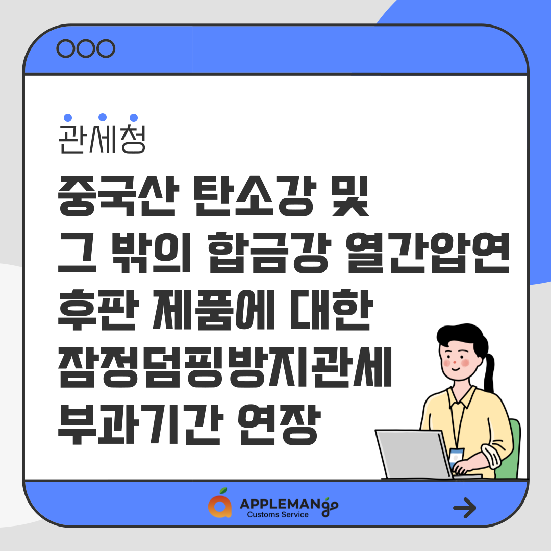 중국산 탄소강 및 그 밖의 합금강 열간압연 후판 제품에 대한 잠정덤핑방지관세 부과기간 연장