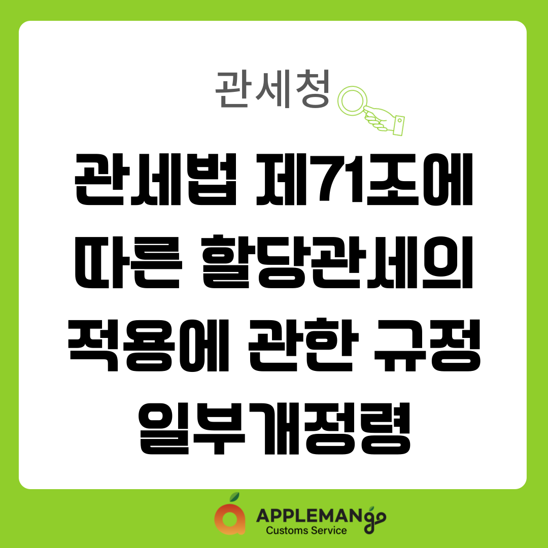 관세청, 관세법 제71조에 따른 할당관세의 적용에 관한 규정 일부개정령