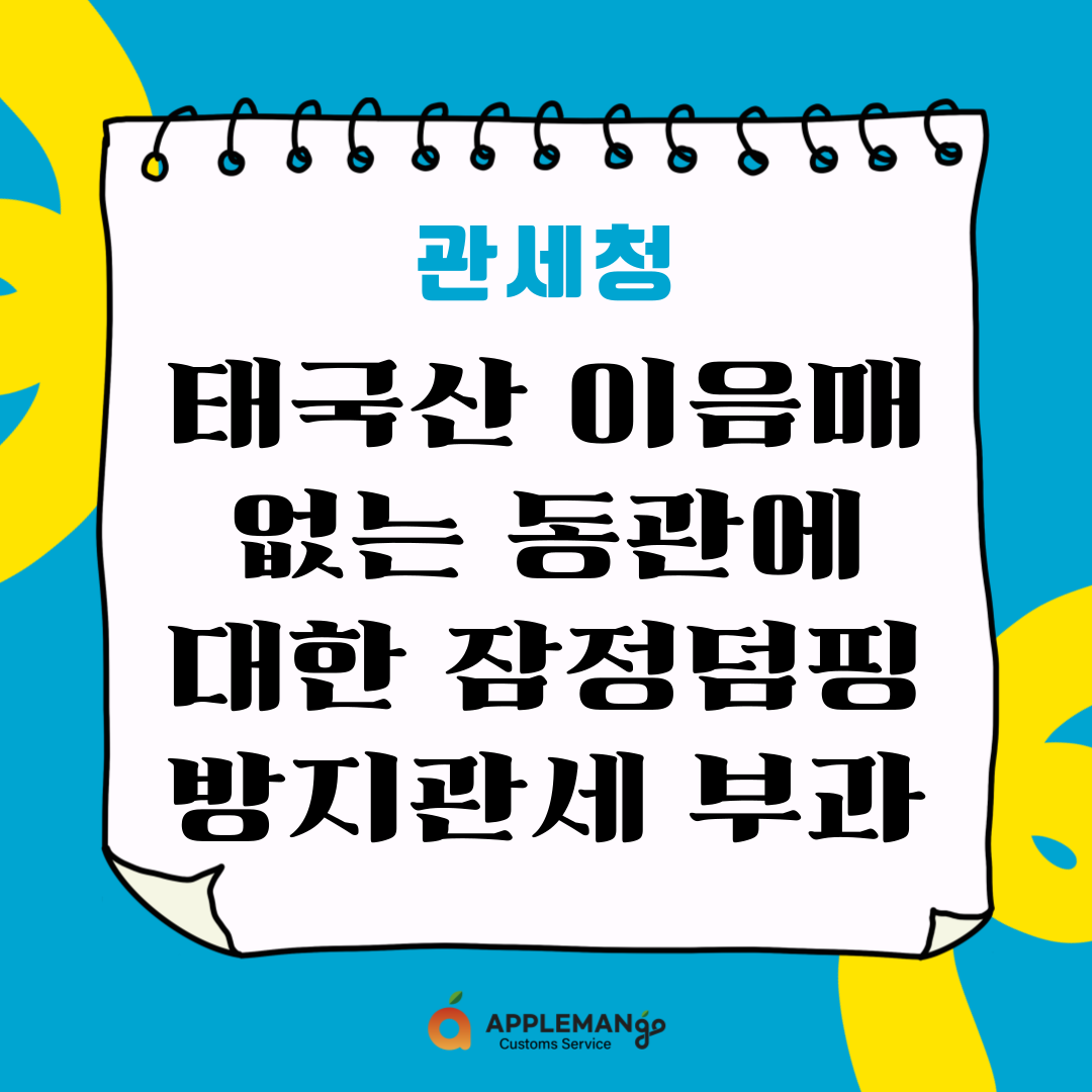 태국산 이음매 없는 동관에 대한 잠정덤핑방지관세 부과