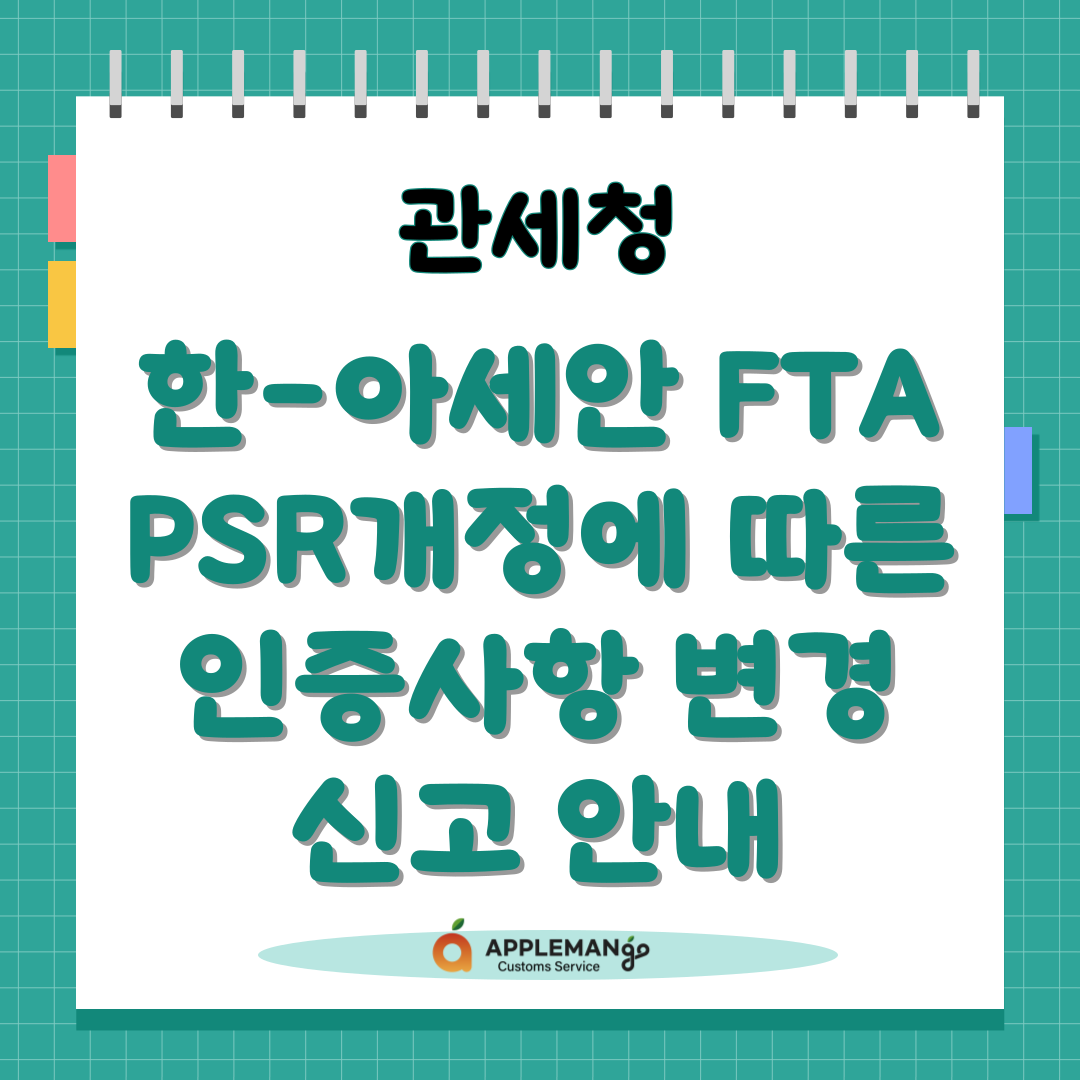 관세청, 한-아세안 FTA PSR개정에 따른 인증사항 변경신고 안내